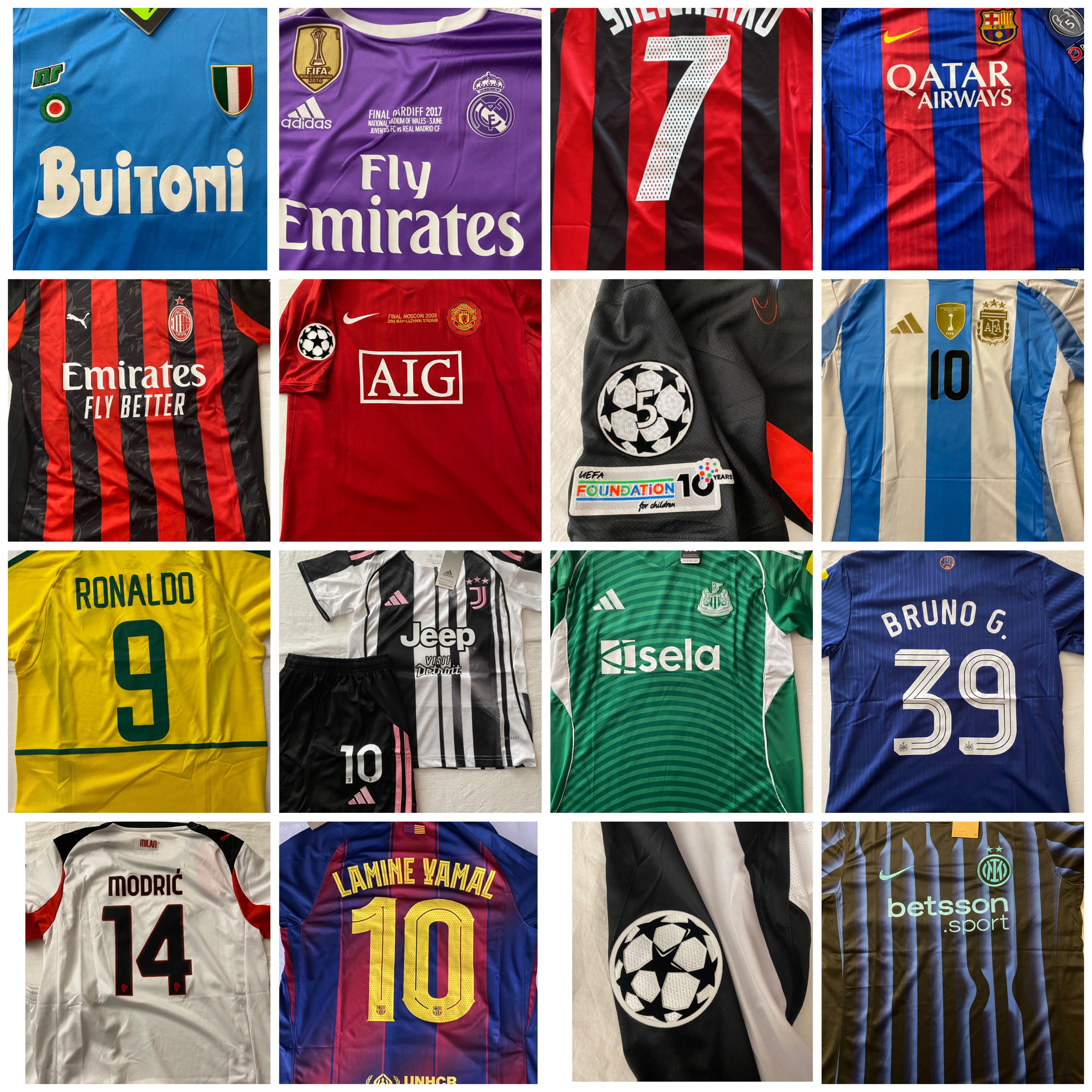 Da pochissimo, ho aperto questa attività. Voglio proporvi maglie della maggior parte dei campionati, di tantissimi giocatori, sia dell'epoca moderna e sia dell'epoca passata, infatti vendo maglie sia di questa stagione e sia di quelle passate, per ricordare anche i campioni del passato. Se avete richieste particolari come informazioni e foto aggiuntive dei prodotti, contattatemi! Evviva il calcio❤️⚽️